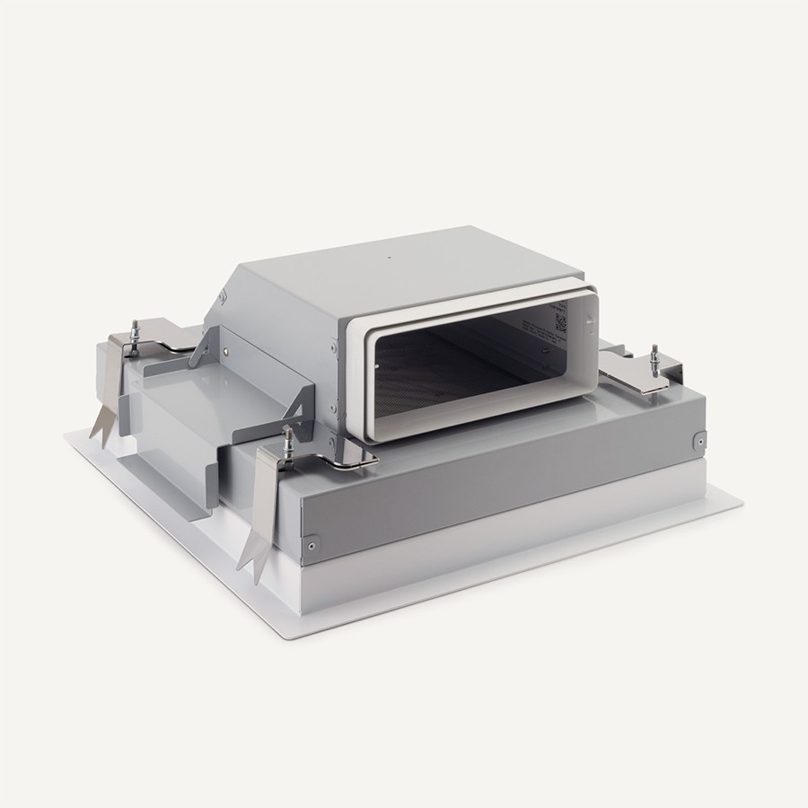 The Falmec Nube Ceiling Hood (Model CNBI90.E2P2#ZZZB400F) is a sleek, modern ceiling-mounted range hood designed for effective air filtration in contemporary kitchens. It features a minimalist design that integrates seamlessly into the ceiling, offering a discreet ventilation solution. Equipped with advanced extraction technology, it efficiently removes smoke, odors, and grease from the air while operating quietly. The Nube Ceiling Hood is constructed with high-quality materials, ensuring durability, and it includes LED lighting for enhanced visibility over your cooking area. Ideal for those seeking a stylish yet functional ventilation system.